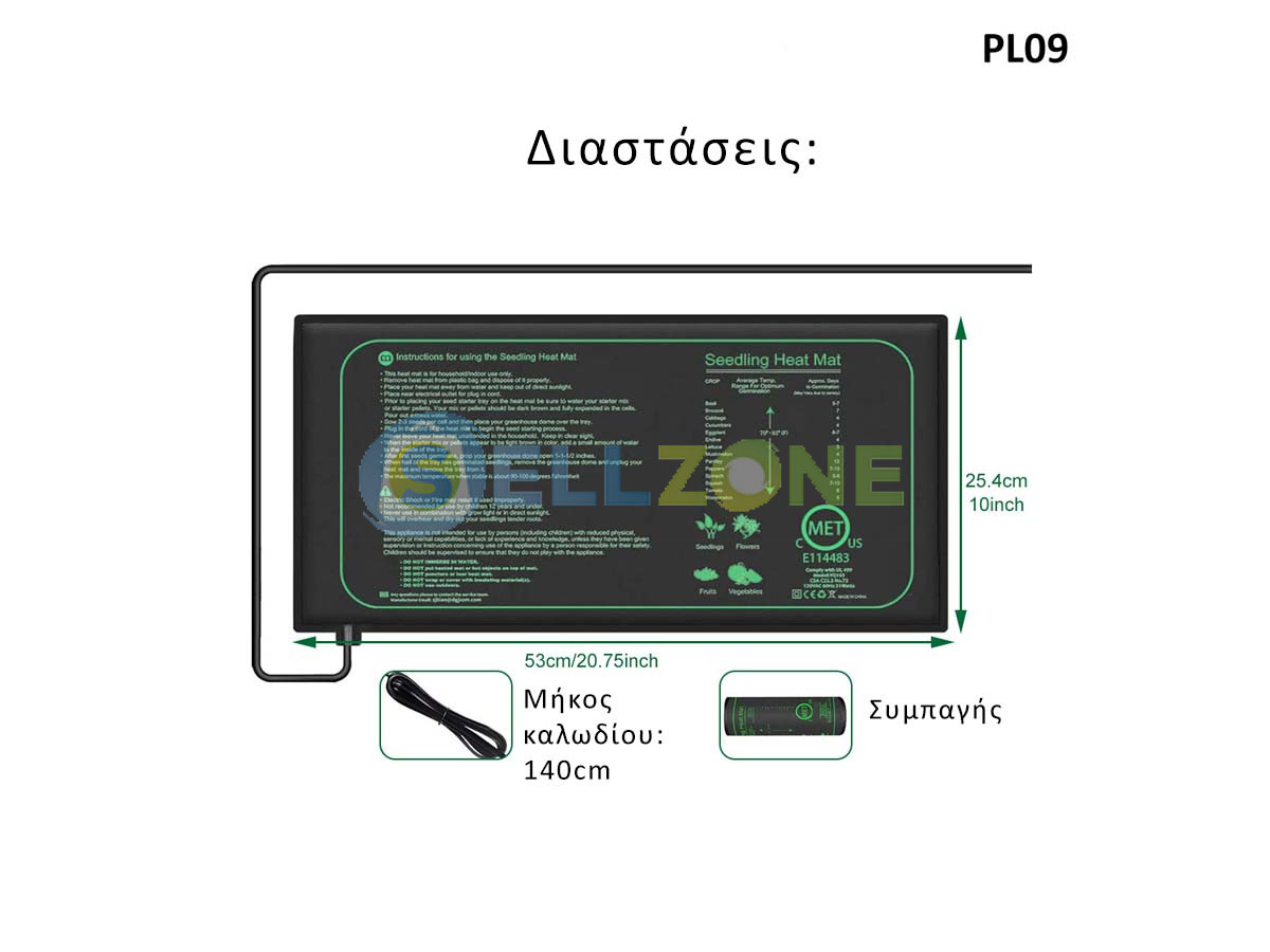 Θερμαντικό χαλάκι για δενδρύλλια φυτών 25/50CM αδιάβροχο - PL09