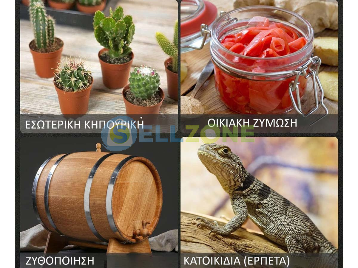 - Με τον ενσωματωμένο θερμοστάτη, έχετε τον πλήρη έλεγχο της θερμοκρασίας, διασφαλίζοντας τις κατάλληλες συνθήκες για κάθε καλλιέργεια.