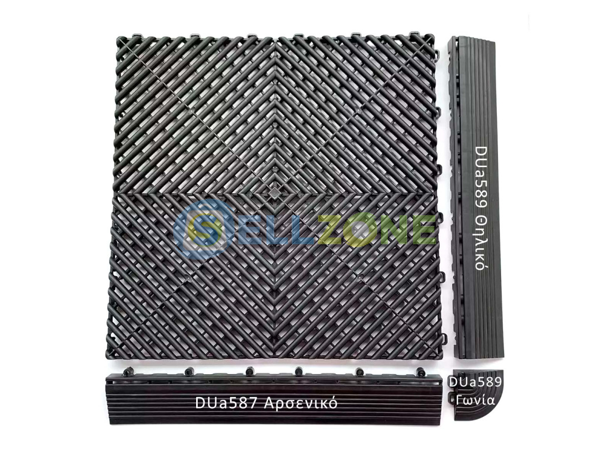 Η άκρη DUa587 είναι κατάλληλη για χρήση με πλακίδια με τρύπες. Διασφαλίζει ομαλή και ασφαλή ολοκλήρωση του δαπέδου χωρίς αιχμηρές άκρες. Αυτή η άκρη είναι συμβατή με όλα τα χρώματα των PVC αρθρωτών πλακιδίων, όπως μαύρο (DUa583), γκρι (DUa584), κίτρινο (DUa585) και κόκκινο (DUa586). Οι εξέχοντες κόκκοι εισάγονται εύκολα στις τρύπες των πλακιδίων, προσφέροντας σταθερότητα και αισθητικό φινίρισμα.