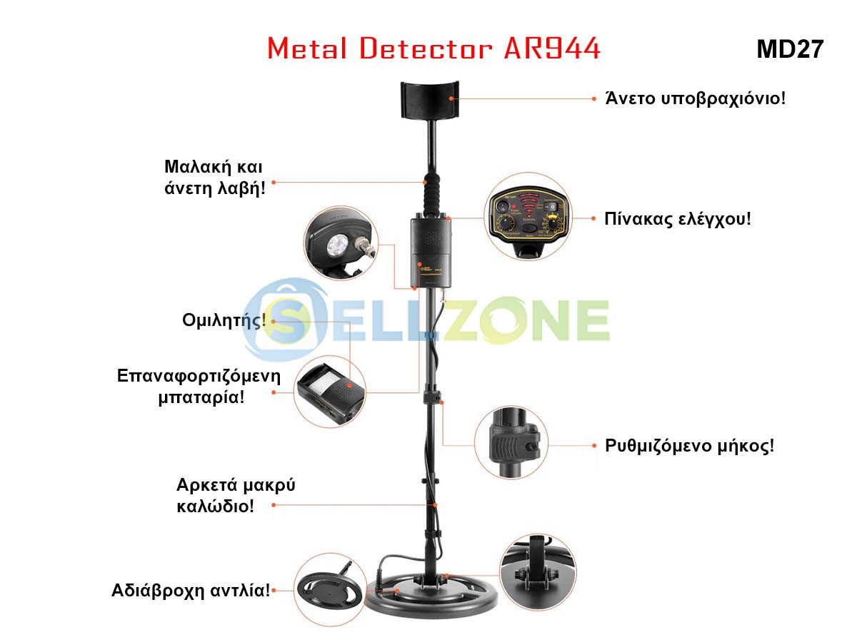 Ανιχνευτής μετάλλων κατάλληλος για ενδιάμεσες:*Έχει πολλές λειτουργίες και αυτόματες ρυθμίσεις: Διάκριση, Ρυθμιζόμενη ευαισθησία, Μείωση και αύξηση έντασης, Ενδείκτης χαμηλής μπαταρίας, Ένδειξη χαμηλής μπαταρίας 3,5 χιλιοστά υποδοχή ακουστικών Επαναφορτιζόμενη μπαταρία
