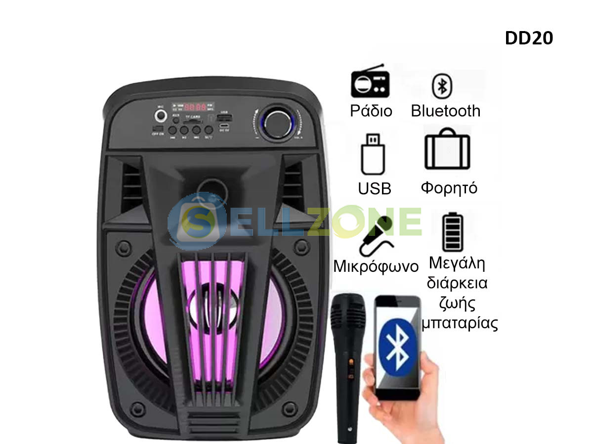 Ασύρματο ηχείο Bluetooth Karaoke + μικρόφωνο, φως LED και buffer - DD20