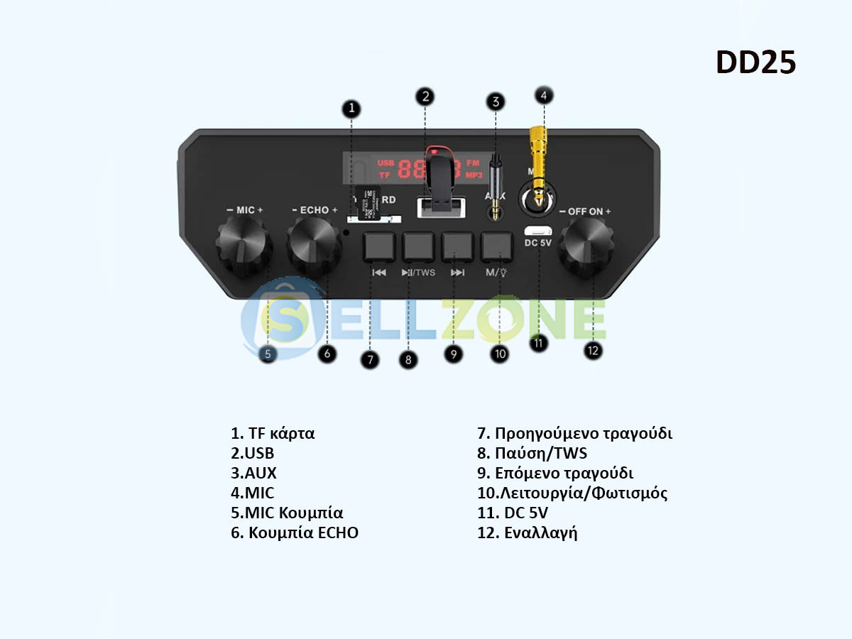 Ασύρματο ηχείο Super Bass με μικρόφωνο και τηλεχειριστήριο - DD25