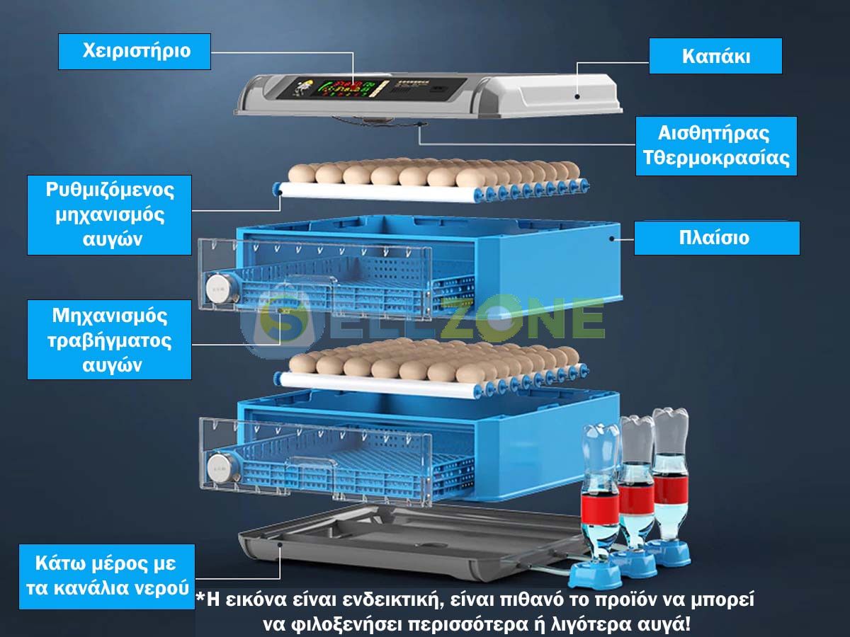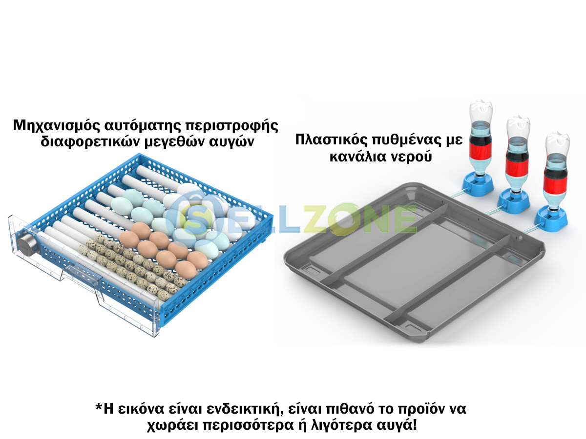 Η θερμοκοιτίδα αυτή είναι κατάλληλη για εκκόλαψη αυγών διαφόρων μεγεθών, όπως αυγά κότας, πάπιας, χήνας, ορτυκιού κ.ά.