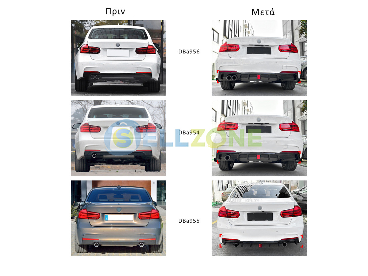 Διαχύτης ρύθμισης για πίσω προφυλακτήρα με φώτα LED και διαχωριστές για BMW 3 F30 M με μονή εξάτμιση – DBa954