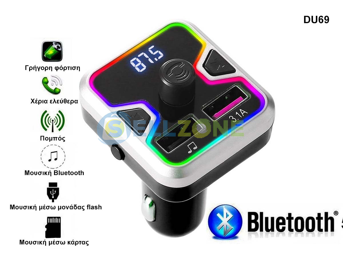 Έγχρωμος πομπός Bluetooth FM για αυτοκίνητο, φορτηγό, λεωφορείο - DU69