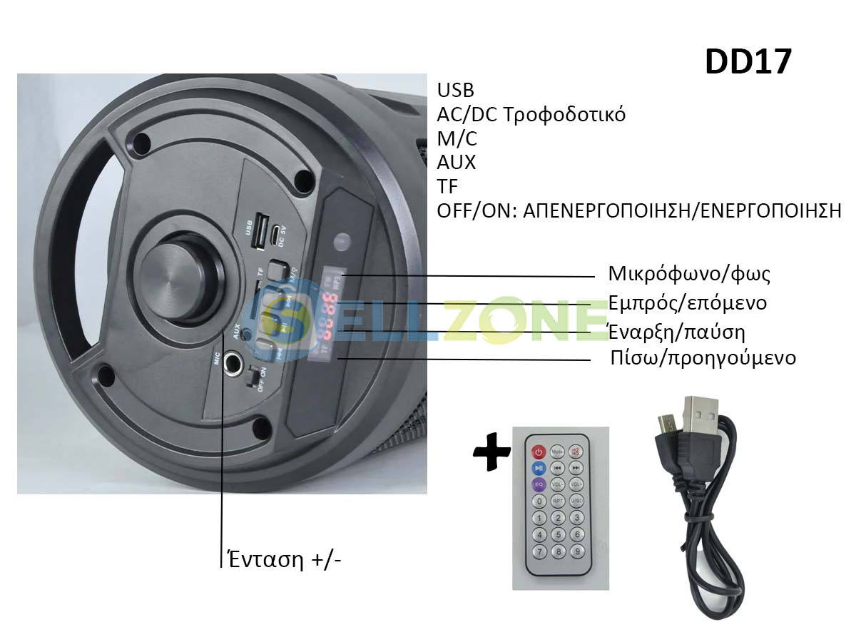 Φορητό ηχείο Karaoke με Bluetooth + μικρόφωνο και τηλεχειριστήριο - DD17