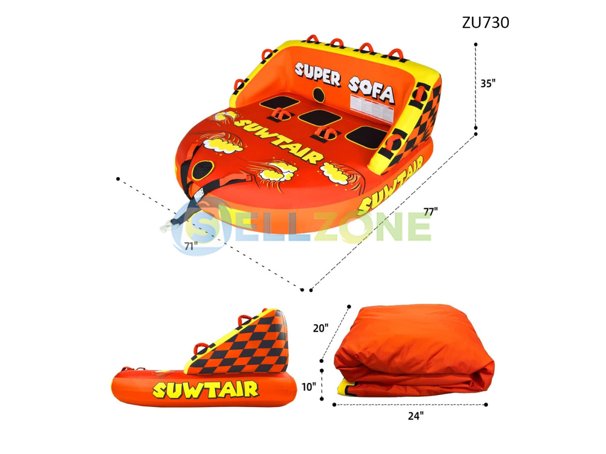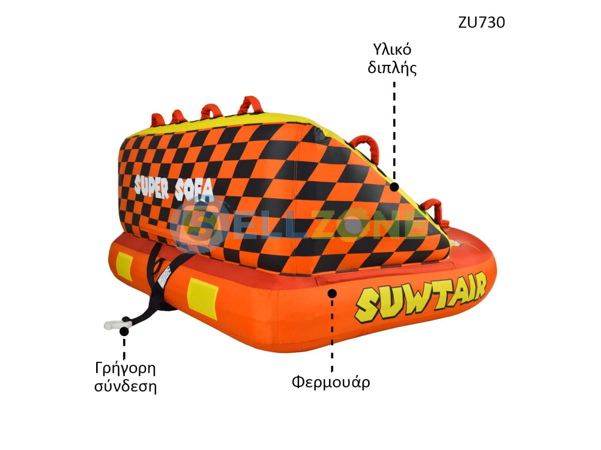 Το Super Sofa είναι ένας φουσκωτός θαλάσσιος ατραξιόν με μοναδικό σχέδιο που εξασφαλίζει σταθερότητα και άνεση κατά τη διάρκεια του τράβηγματος. Με τα ανθεκτικά και ανθεκτικά υλικά του, αυτός ο ατραξιόν εγγυάται μακροχρόνια χρήση και αξιόπιστη λειτουργία. Η μεγάλη του επιφάνεια και οι άνετες θέσεις το καθιστούν ιδανικό για οικογενειακή διασκέδαση και ομαδικές περιπέτειες.