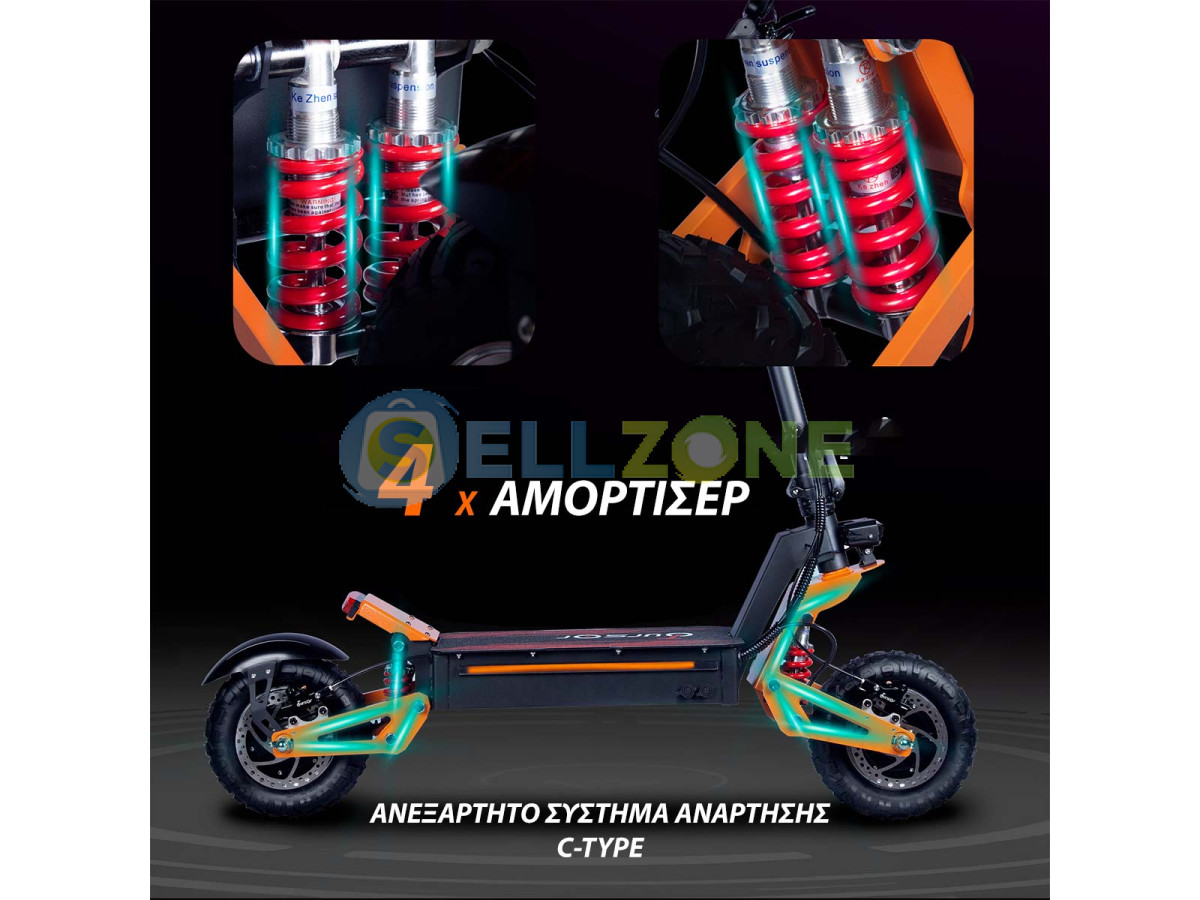 Από τα ισχυρά υδραυλικά φρένα μέχρι τα φωτεινά φώτα και την ανάρτηση για εκτός δρόμου, αυτό το σκούτερ εξασφαλίζει μέγιστη ασφάλεια και άνεση σε οποιεσδήποτε συνθήκες του δρόμου.