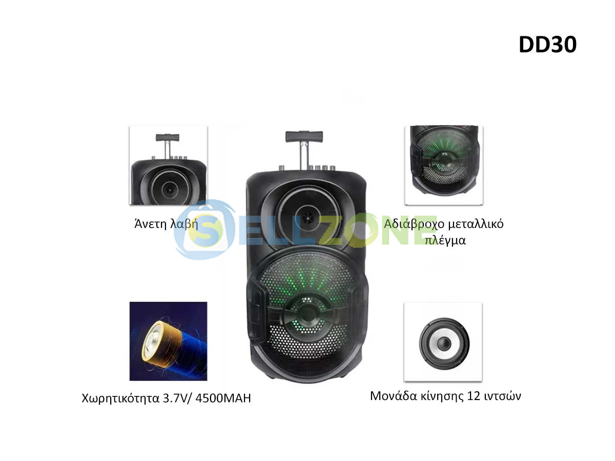 Ηχείο Bluetooth 12" Στερεοφωνικό Subwoofer Bass - DD30