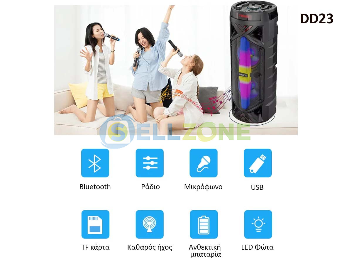 Ηχείο καραόκε Bluetooth με δυνατό μπάσο και φώτα LED + μικρόφωνο και τηλεχειριστήριο - DD23