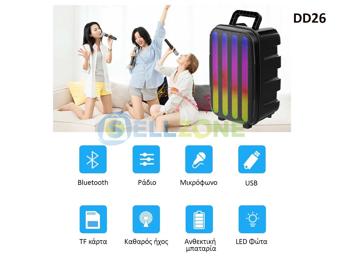 Ηχείο καραόκε με φώτα Bluetooth και RGB + μικρόφωνο και τηλεχειριστήριο - DD26