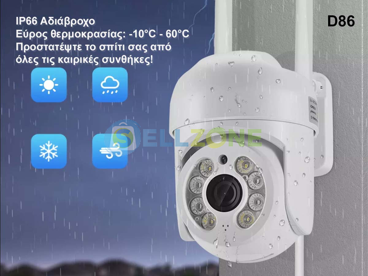 Αυτή η κάμερα CCTV είναι αδιάβροχη και μπορεί να χρησιμοποιηθεί σε εξωτερικούς χώρους χωρίς να ανησυχείτε για δυσμενείς καιρικές συνθήκες. Επιπλέον, η κάμερα διαθέτει ενσωματωμένο μικρόφωνο που παρέχει καθαρό ήχο κατά την ταυτόχρονη λήψη βίντεο.
