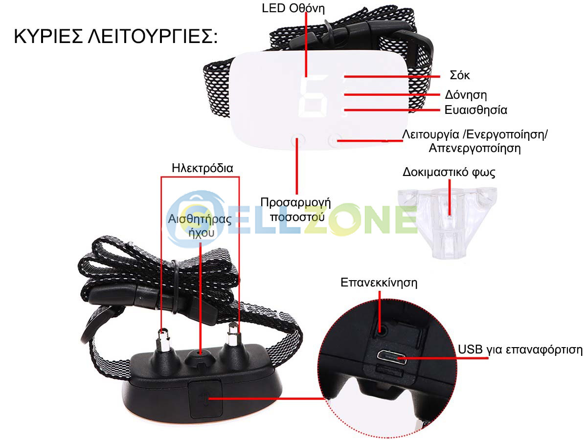 λειτουργία - περιορισμός του γαβγίσματος και του ουρλιαχτού των σκύλων.