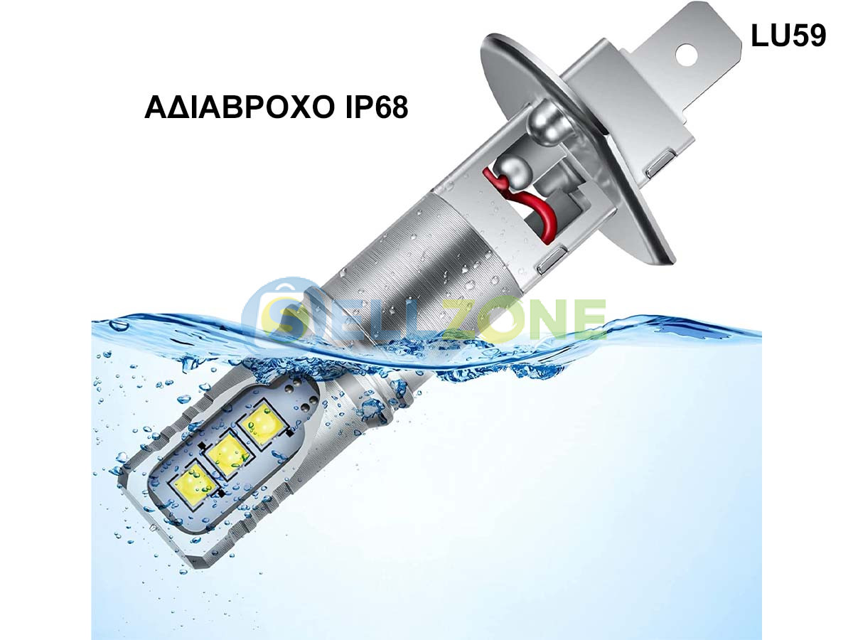 Λαμπτήρες αυτοκινήτου H1 6000K εξαιρετικά φωτεινοί 6000LM LED - LU59
