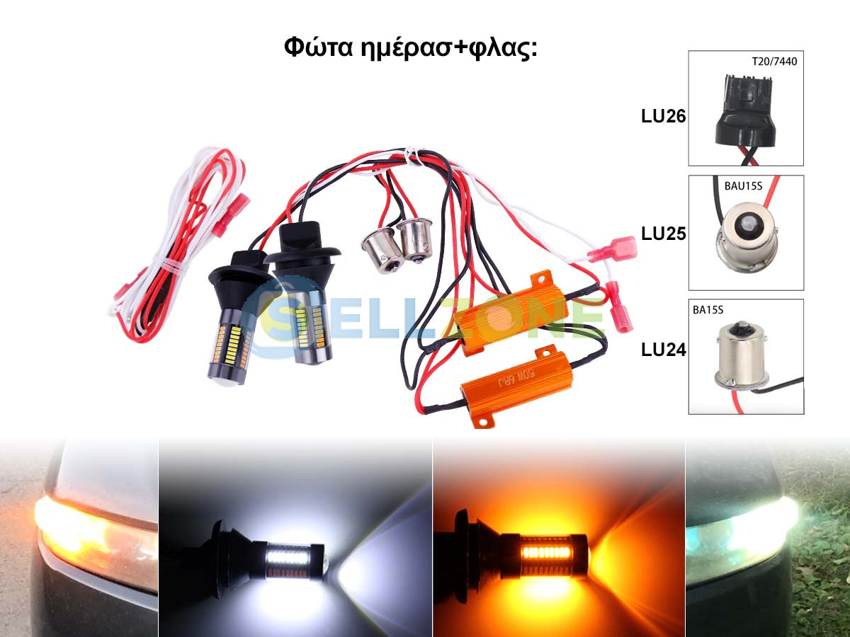 LED DRL φώτα ημέρας γενικής χρήσης με ένδειξη - 66 τεμ. δίοδος - LU24-LU26