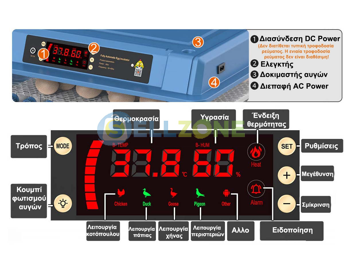 Λειτουργία αυτόματης ειδοποίησης – ειδοποιεί για αποκλίσεις από τις καθορισμένες παραμέτρους θερμοκρασίας και υγρασίας, επιτρέποντας γρήγορη διόρθωση και αποφυγή απώλειας αυγών.