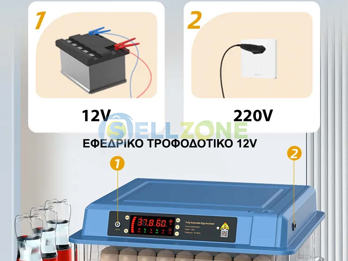 Τροφοδοσία ρεύματος και εφεδρική παροχή – η θερμοκοιτίδα λειτουργεί με ηλεκτρικό ρεύμα και διαθέτει επιλογή εφεδρικής τροφοδοσίας με μπαταρία 12V, εξασφαλίζοντας αδιάλειπτη λειτουργία ακόμη και σε διακοπές ρεύματος.
