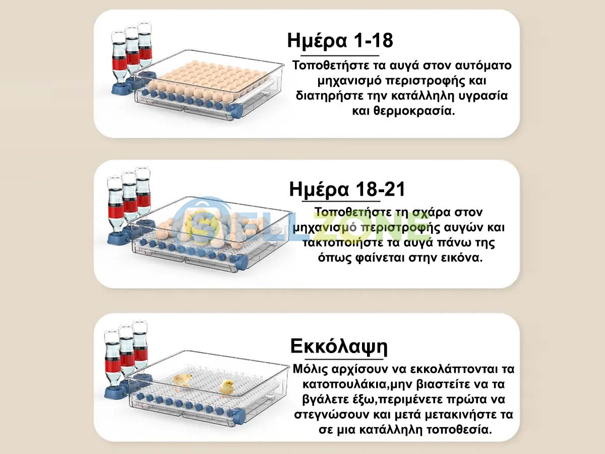 Χωρητικότητα αυτόματης θερμοκοιτίδας για 400 αυγά: