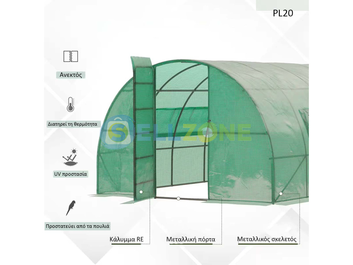 Μεγάλο θερμοκήπιο πολυτούνελ με μεταλλικό σκελετό 4x3x2m – PL20