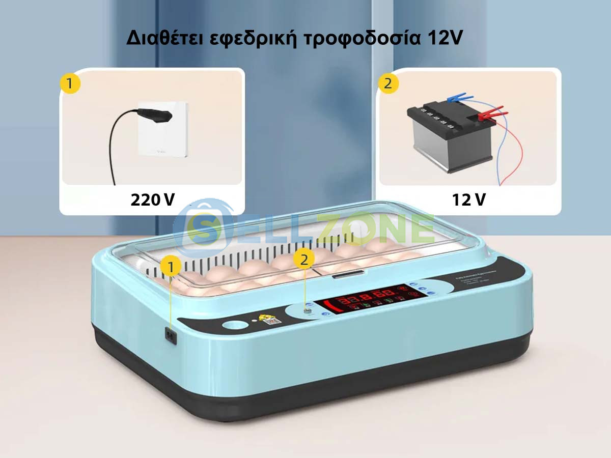 Χωρητικότητα του αυτόματου μίνι θερμοκοιτίδας για 24 αυγά: