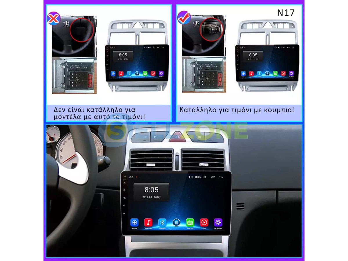 Πλοήγηση GPS 9″ Android 12 πολυμέσων Peugeot 307 2002-2010 – N17