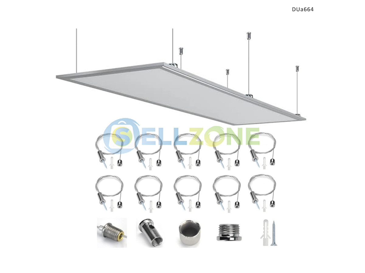 Το σετ DUa664 προσφέρει μια πλήρη και αξιόπιστη λύση για την ανάρτηση LED πάνελ τύπου "Honeycomb" και άλλων κατασκευών. Κάθε ρυθμιζόμενη κρεμάστρα φωτισμού περιλαμβάνει συρματόσχοινο από ανοξείδωτο ατσάλι μήκους 150 cm και όλα τα απαραίτητα εξαρτήματα για στερέωση στην οροφή – ούπα, βίδα, βιδωτό στηρίγμα και προσαρμογέα για LED πάνελ ή άλλες ελαφριές κατασκευές.
