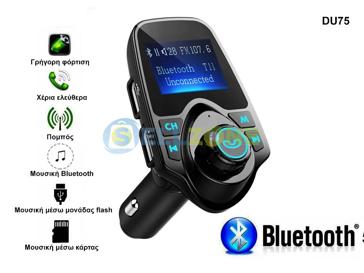 T11 Πομπός ραδιοφώνου αυτοκινήτου Bluetooth FM με κάρτα Micro SD/TF - DU75