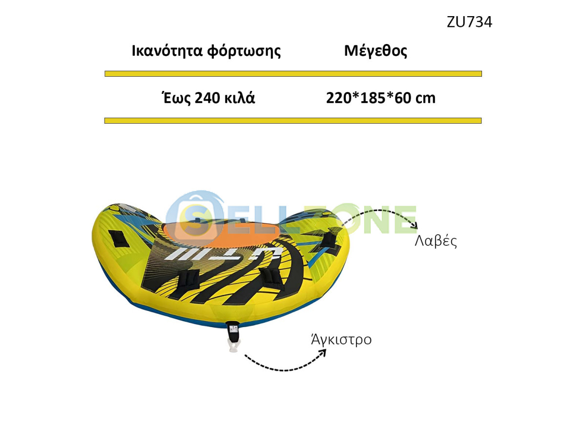 Ο τριθέσιος φουσκωτός καναπές για τράβηγμα στο νερό UT III είναι η τέλεια επιλογή για όσους αγαπούν τα θαλάσσια σπορ και αναζητούν αξέχαστες στιγμές με φίλους και οικογένεια. Με τα υψηλής ποιότητας υλικά του, τον εργονομικό σχεδιασμό και τις ανθεκτικές χειρολαβές, προσφέρει μέγιστη άνεση και ασφάλεια κατά το τράβηγμα. Είτε βρίσκεστε στη θάλασσα, σε λίμνη ή ποτάμι, αυτό το θαλάσσιο ατραξιόν θα σας προσφέρει αμέτρητες ώρες διασκέδασης και χαράς.
