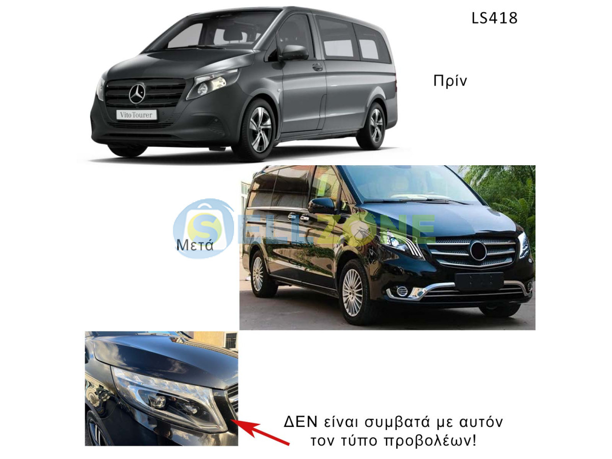 Tuning φανάρια LED για Mercedes V-Class/Vito (2016-2023) με προβολείς αλογόνου – LS418