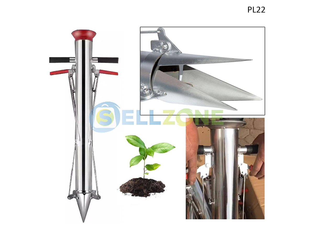 Μηχανισμός λειτουργίας: Η πίεση της λαβής ανοίγει το κάτω μέρος του σωλήνα, επιτρέποντας την ακριβή τοποθέτηση του σπορόφυτου στο έδαφος.