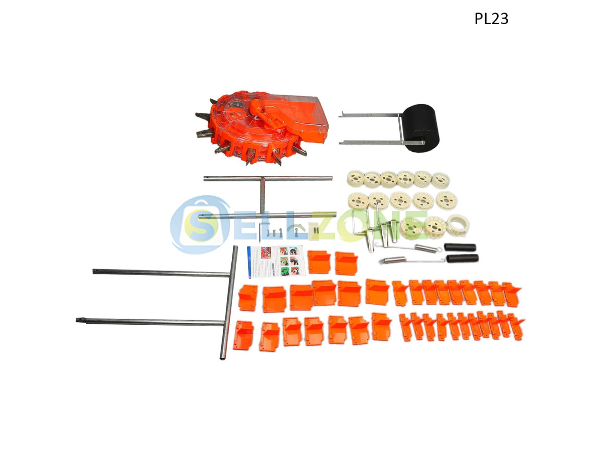 Σετ με διάφορους τύπους καλουπιών για σπόρους: Η σπαρτική μηχανή περιλαμβάνει διάφορους τύπους καλουπιών (μόλντς) για προσαρμογή σε διαφορετικές καλλιέργειες – καλαμπόκι, σιτάρι, ηλίανθος, κριθάρι, ντομάτες, αγγούρια και άλλα.